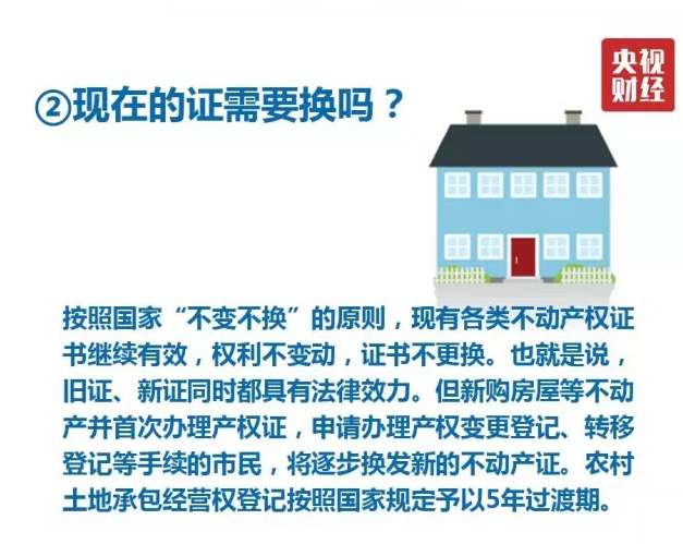 但就權(quán)利人的實(shí)質(zhì)影響而言,不動(dòng)產(chǎn)登記證明只是房產(chǎn)證、國(guó)土證等不動(dòng)產(chǎn)統(tǒng)一后的新證明,可以為入學(xué)、就醫(yī)、出國(guó)等作為證明和擔(dān)保。舊的房產(chǎn)證并非一定要換“新證”。不動(dòng)產(chǎn)登記機(jī)構(gòu)堅(jiān)持“不變不換”原則,權(quán)利不變動(dòng),簿證不更換,依法辦理變更、轉(zhuǎn)移等登記工作時(shí),逐步更換為新的不動(dòng)產(chǎn)登記簿證。